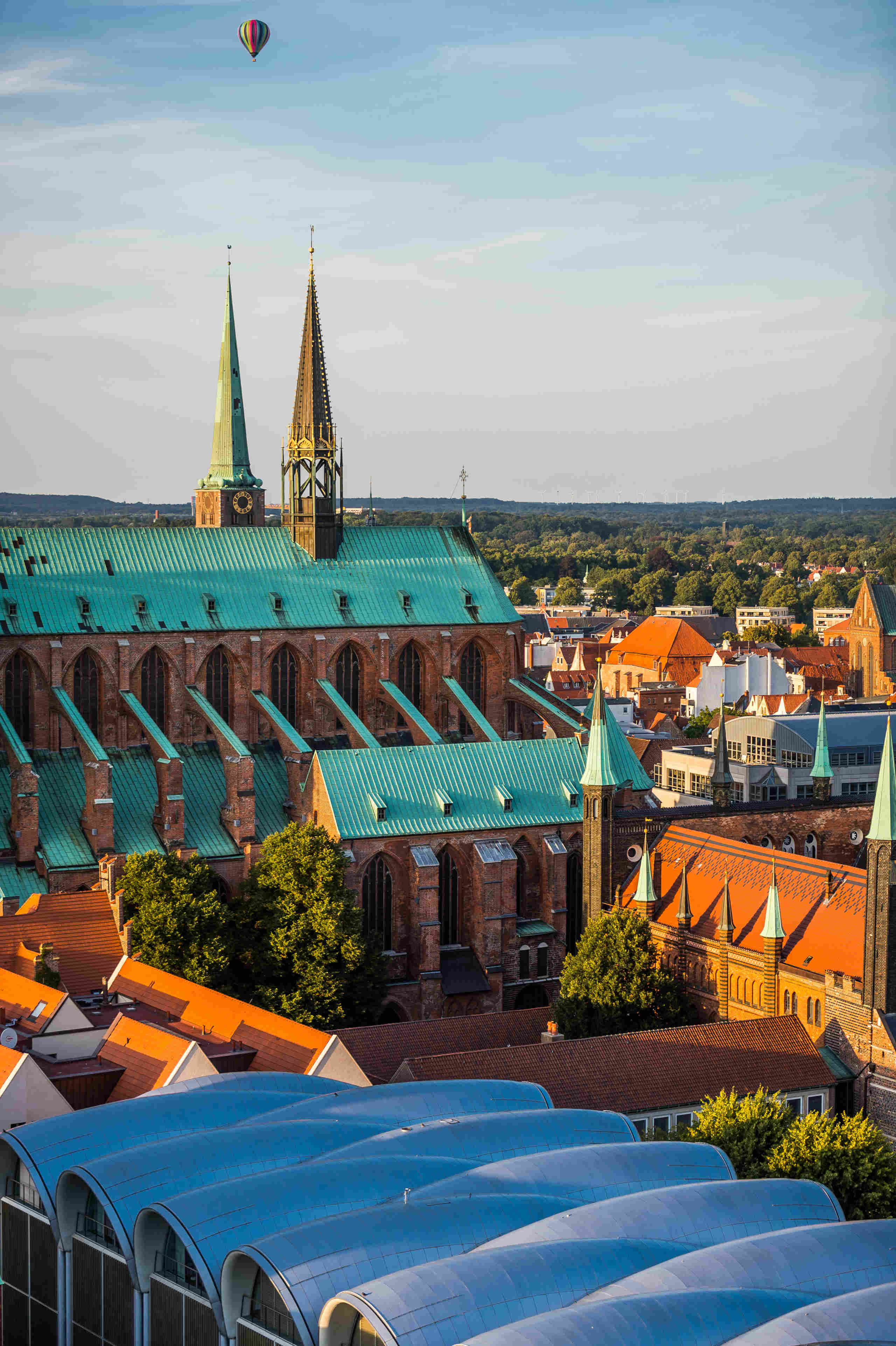 The viewing platform offers you a perfect view of Lübeck high above the rooftops of the Old Town. On one side, you can photograph Holsten Gate as the entrance gate to the historical Old Town. The ensemble of buildings here is complemented by the red-brick Salt Warehouses. If you then turn to your right, you will be greeted by a super view from above onto St. Mary’s church and Lübeck’s historical Town Hall. The best pictures can be taken when the sky is clear, and it there are no clouds or mist, you may be lucky enough to see as far as the Baltic Sea. At the golden hour, shortly before dawn or dusk, the city begins to shine.